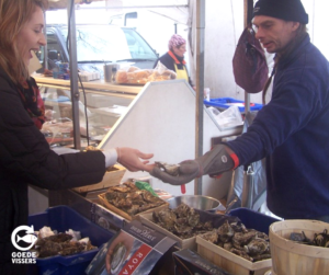 De viskraam op de boerenmarkt wordt gerund door echte vissers. Jan en Barbara Geertsema zijn hardervissers op de Waddenzee. Naast harder en zeebaars vangen ze ook kleine